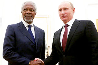 Sau các cuộc hội đàm với Tổng thống Nga Vladimir Putin và Ngoại trưởng Sergei Lavrov tại Mát-xcơ-va ngày 17-7, Đặc phái viên Annan nói với các phóng viên rằng ông đã có các cuộc hội đàm “rất tích cực” với các nhà lãnh đạo Nga, trong đó tập trung bàn các biện pháp cần thiết để chấm dứt bạo lực và tiến tới giai đoạn chuyển giao chính trị tại quốc gia Trung Đông này. Ông cũng bày tỏ hy vọng các thành viên trong HĐBA sẽ tìm được tiếng nói chung nhằm chấm dứt bạo lực ở Syrie. Về phần mình, Tổng thống Putin nhấn mạnh: “Ngay từ đầu, chúng tôi luôn ủng hộ Đặc phái viên chung của LHQ và AL. Chúng tôi ủng hộ nỗ lực của ông Annan nhằm lập lại hòa bình tại Syrie. Chúng tôi đảm bảo sẽ làm bất cứ điều gì trong phạm vi của mình để ủng hộ những nỗ lực đó”. Mặc dù vậy, ông chủ Điện Kremlin không có ý gì cho thấy sẽ thuận theo biện pháp do Mỹ và phương Tây đề xuất.