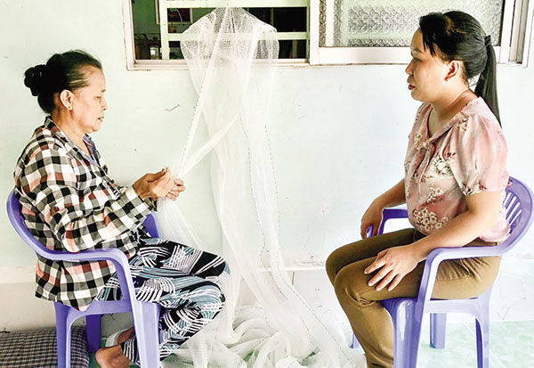 Chị Trần Thị Cẩm Hường (bên phải) thăm hỏi tìm hiểu tình hình sản xuất, đời sống hội viên phụ nữ địa phương.