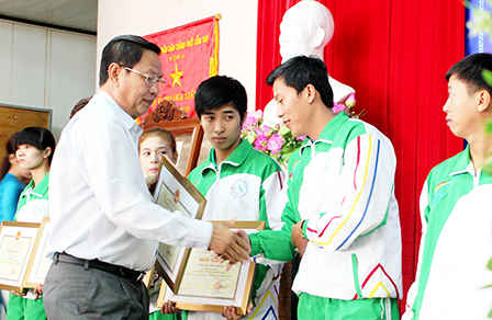 Võ sĩ Trần Công Tạo (thứ hai, phải sang) là một trong số ít VĐV Cần Thơ được thi đấu tại SEA Games.