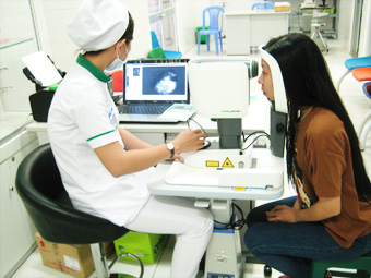 Chụp đáy mắt laser theo công nghệ SLO (Scanning Laser Ophthalmoscopy) tại BVĐK Hoàn Mỹ Cửu Long. Ảnh: Đ.K |