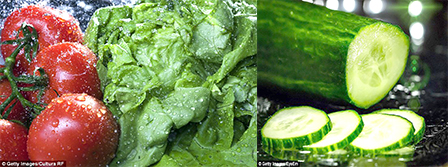 Về lượng nước có trong thực phẩm, trái cây và rau củ là 2 nguồn cung dồi dào với hiệu quả cân bằng độ ẩm cơ thể gấp đôi so với chỉ uống 1 ly nước. Nguyên nhân là chất lỏng trong thực phẩm được bao bọc bởi các phân tử khác. Khi ăn những loại thực phẩm giàu nước, chúng ta sẽ hấp thụ chất lỏng bên trong chậm nhưng dễ dàng hơn, đồng nghĩa lượng nước duy trì trong cơ thể lâu hơn. Ngoài ra, nhóm nghiên cứu tại Trường Y Đại học Aberdeen (Anh) còn phát hiện trái cây và rau củ nhiều nước chứa lượng đường tự nhiên, prôtêin, muối khoáng và các vitamin cao hơn. Như vậy, khi bạn ăn một trái dưa leo khoảng 100gr, cơ thể sẽ được bổ sung khoảng 100ml chất lỏng đồng thời hấp thụ thêm chất xơ và nhiều chất dinh dưỡng khác. Ngoài dưa leo thì xà lách, bí xanh, khoai tây, táo, lê, cà chua, dưa hấu đều là những thực phẩm chứa hàm lượng nước cao nhất với hơn 95%.