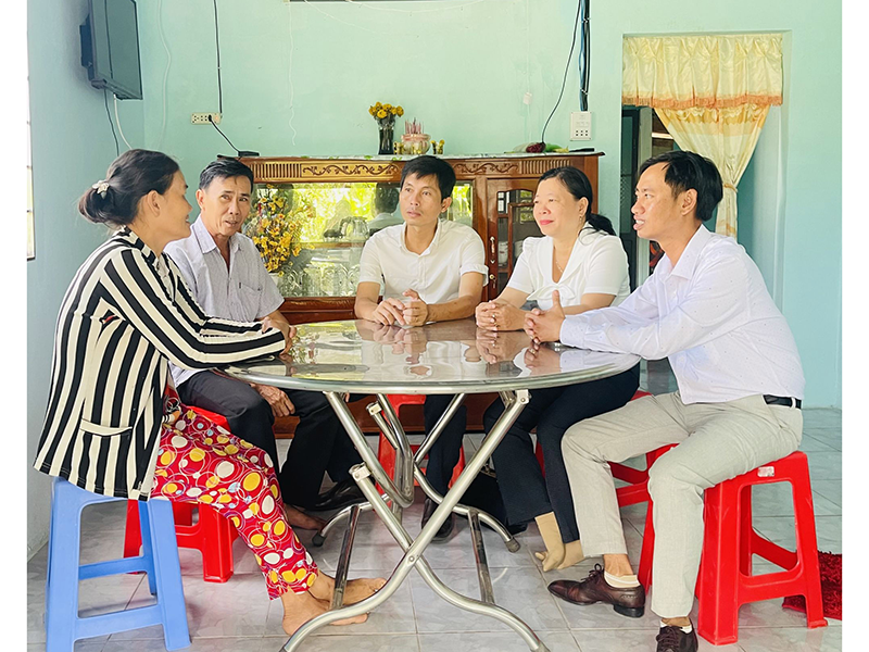 Đại diện Đảng ủy, Ban Thường trực Ủy ban MTTQVN và đoàn thể phường Thới Long thăm hỏi tình hình sản xuất, đời sống gia đình bà Nguyễn Kim Liên.