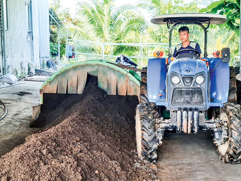 Ứng dụng cơ giới hóa trong sản xuất phân hữu cơ tại HTX New Green Farm.
