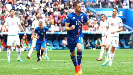 G.Sigurdsson thực hiện thành công quả 11m, đưa Iceland vượt lên dẫn trước trong hiệp 1. Ảnh: Getty |