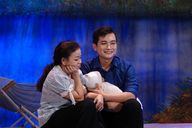 Hoàng Thắng vai Chờ cùng bạn diễn Thùy Trang trong vở “Dòng nhớ”. Ảnh: DUY KHÔI