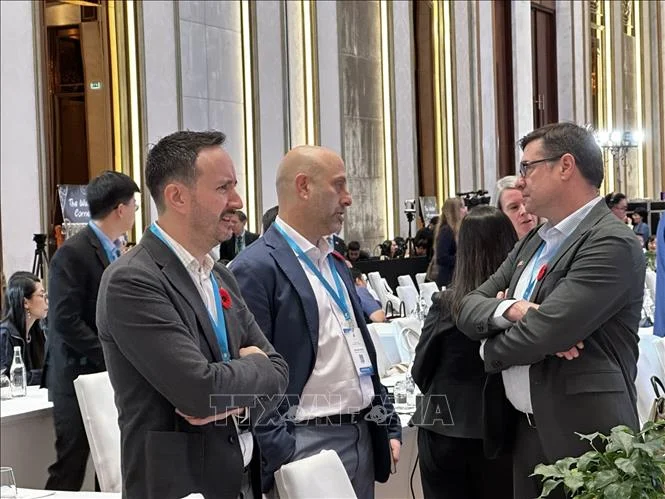 Đại biểu quốc tế trao đổi bên lề Hội thảo.
