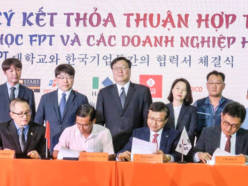Lễ ký kết thỏa thuận hợp tác giữa Đại học FPT Cần Thơ và các doanh nghiệp Hàn Quốc.