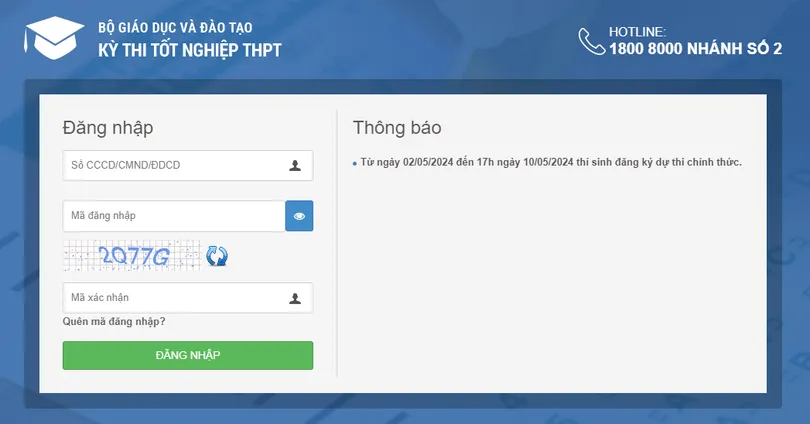 Cổng đăng ký trực tuyến Kỳ thi tốt nghiệp THPT năm 2024