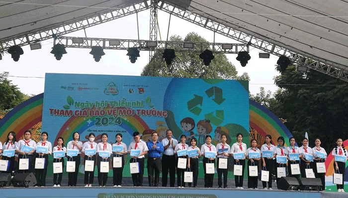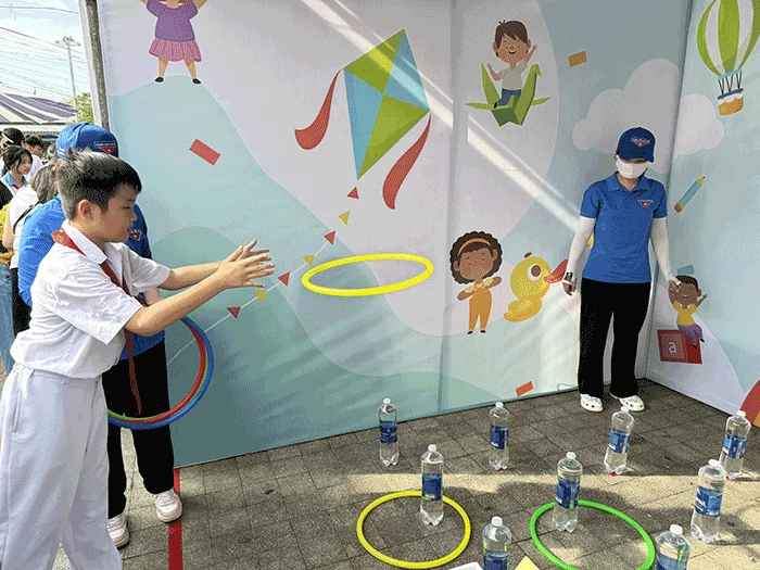 Thiếu nhi tham gia các trò chơi trong khuôn khổ Ngày hội "Thiếu nhi bảo vệ môi trường" ngay sau Lễ ra quân Chiến dịch TNTN hè năm 2024.