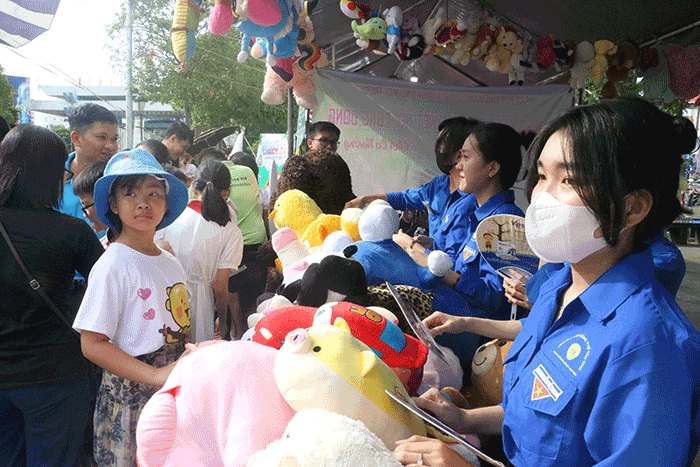 Thiếu nhi tham gia các hoạt động đổi rác lấy quà ngay sau Lễ ra quân Chiến dịch TNTN hè năm 2024.