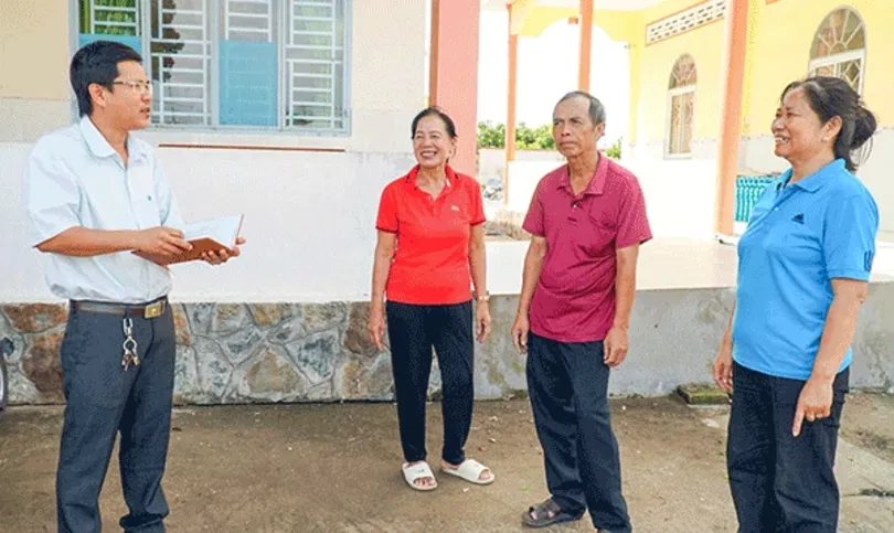 Cán bộ tuyên giáo thị trấn Thới Lai (bên trái) tiếp xúc, nắm tình hình đời sống, tư tưởng, nguyện vọng của người dân để kịp thời tham mưu cấp ủy đảng, chính quyền giải quyết.