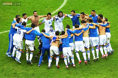 Các cầu thủ Hy Lạp mừng chiến thắng. Ảnh: Getty.