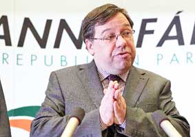 Thủ tướng Ireland Brian Cowen (ảnh) đang đối mặt với cuộc chiến duy trì quyền lực, trong bối cảnh Ngoại trưởng Micheal Martin tuyên bố sẽ tranh chức chủ tịch đảng Fianna Fail (Chiến binh của số mệnh) cầm quyền và nhiều nghị sĩ trong nội bộ đảng muốn ông Cowen từ chức ngay lập tức. Họ hy vọng rằng đảng có thể tốt hơn với lãnh đạo mới trước cuộc tổng tuyển cử dự kiến vào mùa xuân này. Fianna Fail tiến hành bỏ phiếu tín nhiệm ông Cowen trong cuộc họp của đảng vào hôm nay 18-1, và Ngoại trưởng Martin là một trong ba thành viên nội các đang muốn thay thế chức chủ tịch đảng của ông Cowen.