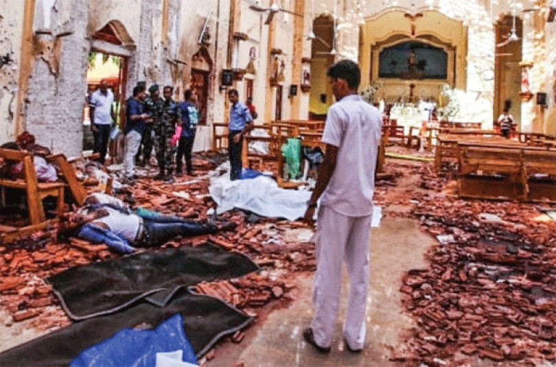 Cảnh đổ nát sau vụ tấn công của IS tại Sri Lanka. Ảnh: AP