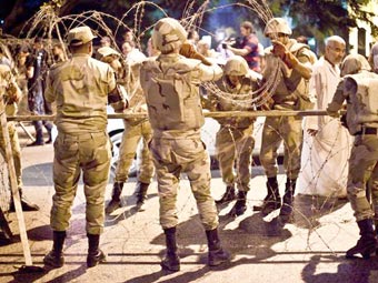 Quân đội Ai Cập chặn dòng người biểu tình ở Cairo. Ảnh: Independent |