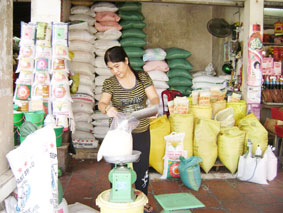 Bán gạo tại Trung tâm Thương mại Cái Khế, TP Cần Thơ. Ảnh: KHÁNH TRUNG |