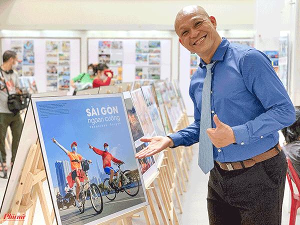 Nghệ sĩ Nguyễn Á tại triển lãm ảnh, ra mắt sách ảnh “Tinh thần Việt và cuộc chiến chống đại dịch COVID-19” và “Sài Gòn ngoan cường”. guồn ảnh: phunuonline.com.vn