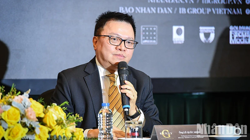 Tổng Biên tập Báo Nhân Dân Lê Quốc Minh chia sẻ thông tin tại buổi họp báo.