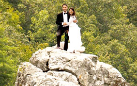 Tờ Điện tín (Telegraph) của Anh hôm 28-8 cho biết cặp đôi Bob Ewing, 32 tuổi và Antonie Hodge Ewing, 30 tuổi (ảnh) đã khiến nhiều người “ngưỡng mộ” khi quyết định tổ chức đám cưới của mình trên đỉnh ngọn núi Seneca, tiểu bang Tây Virginia (Mỹ), hồi trung tuần tháng 8 vừa qua. Trong khi Bob Ewing diện một bộ vest màu đen thì vợ anh trở nên vô cùng duyên dáng trong bộ váy cưới do mẹ cô để lại.