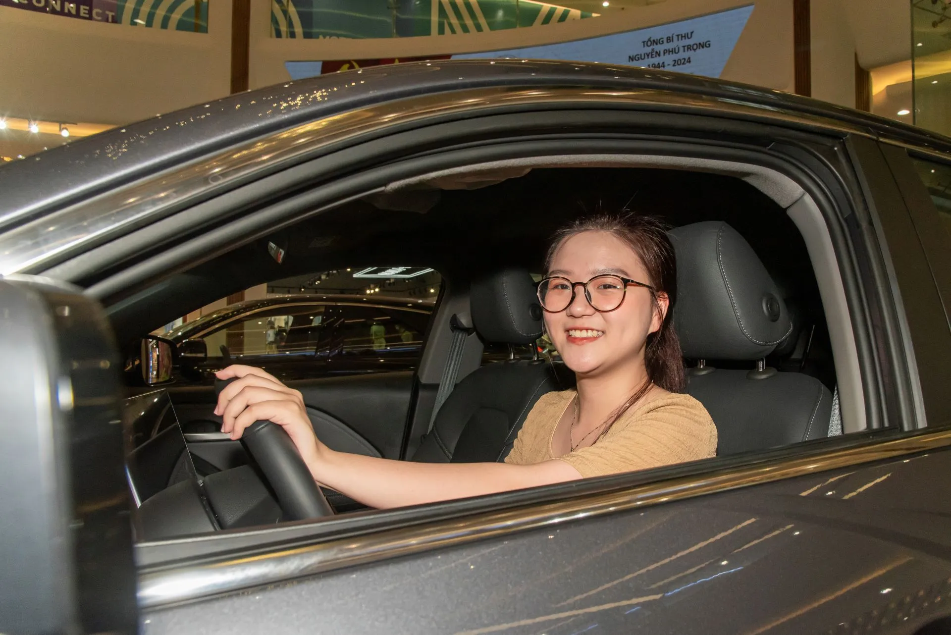 “Điểm mình thích nhất trên VF 6 là công nghệ an toàn. VF 6 sở hữu tới 16 tính năng an toàn nâng cao. Mình có trải nghiệm tính năng ga tự động thông minh và hỗ trợ giữ làn trong lúc lái thử thì thấy rất yên tâm. Mình là phụ nữ, nên sẽ ưu tiên những mẫu xe an toàn như VF 6”, chị nói.