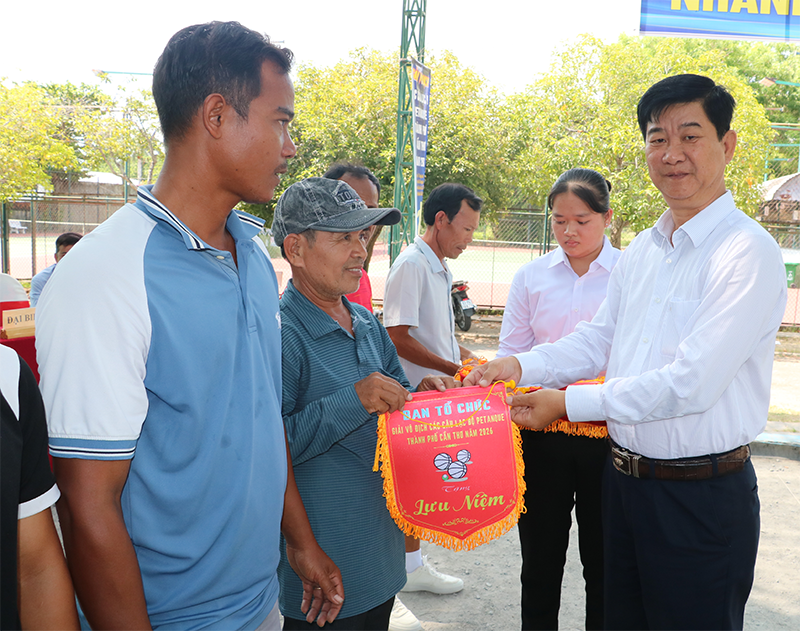 Ông Lâm Thanh Dũng, Phó Giám đốc Sở Văn hóa, Thể thao và Du lịch TP Cần Thơ, trao cờ lưu niệm cho các CLB tham gia.