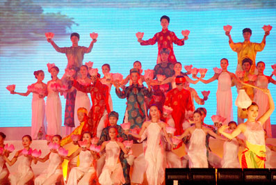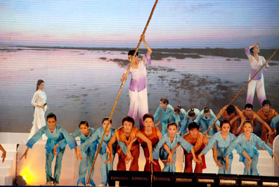 Sau phần lễ là chương trình biểu diễn nghệ thuật với nhan đề “Chuyện kể những dòng sông”. Chương trình đưa khán giả đến với những dòng sông tiêu biểu của 3 miền đất nước Việt Nam như: miền Bắc có con sông Cái qua tiết mục “Bên bờ sông Cái”; miền Trung có sông Hương qua tiết mục “Ngược dòng Hương Giang”; vào đến Nam Bộ, gặp lại dòng Mê Công hùng vĩ. Ở đất châu thổ đồng bằng Nam Bộ, với chín nhánh sông vươn mình ra biển, Mê Công được gọi là Cửu Long Giang qua tiết mục “Sông Quê” và màn múa “Đêm mùa nước nổi”.