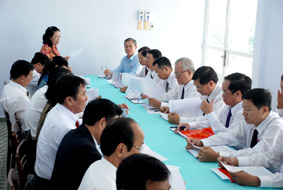 Các đại biểu Đảng ủy khối Doanh nghiệp TP Cần Thơ thảo luận, đóng góp vào các dự thảo Văn kiện chuẩn bị trình Đại hội đại biểu Đảng bộ TP Cần Thơ lần thứ XII, nhiệm kỳ 2010-2015. Ảnh: X. Đ |