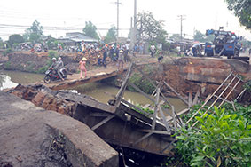 Khẩn trương khắc phục sự cố sập cầu Chín Hấn trên đường tỉnh 865