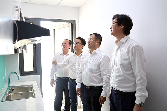 Ông Nguyễn Văn Hòa (bìa trái), Phó Chủ tịch UBND TP Cần Thơ, tham quan các căn hộ trong khu nhà ở xã hội.