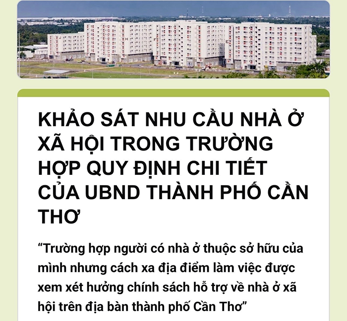- Khảo sát nhu cầu nhà ở xã hội cho người có nhà ở nhưng cách xa địa điểm làm việc