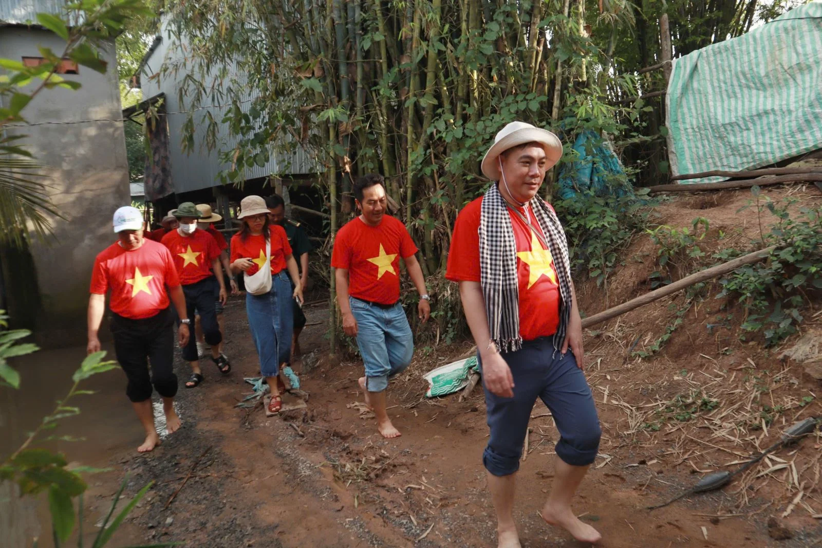 Để có thể đến cột mốc của biên giới Việt Nam - Campuchia, đoàn khảo sát phải đi qua những con đường gập ghềnh và ngập nước.