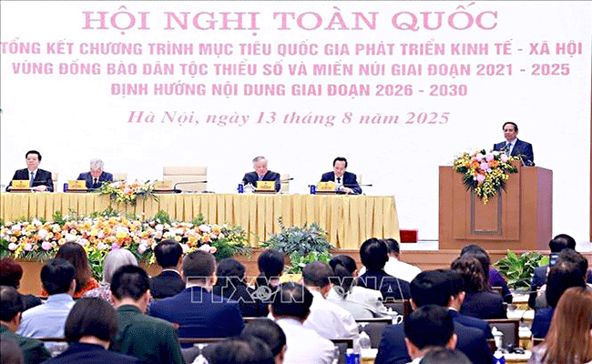 ថ្ងៃទី១៣ ខែសីហា ថ្លែងកថាក្នុងអង្គសន្និបាតទូទាំងប្រទេសស្តីពីការបូកសរុបកម្មវិធីទិសដៅជាតិអភិវឌ្ឍសេដ្ឋកិច្ច-សង្គមតំបន់ជនជាតិភាគតិចនិងតំបន់ភ្នំដំណាក់កាល ២០២១-២០២៥ និងទិសដៅខ្លឹមសារដំណាក់កាល ២០២៦-២០៣០ លោកនាយករដ្ឋមន្ត្រី ផាមមិញជិញ បានសង្កត់ធ្ងន់ថា ការអភិវឌ្ឍសេដ្ឋកិច្ច-សង្គមតំបន់ជនជាតិតិចនិងតំបន់ភ្នំ មិនត្រឹមតែជាភារកិច្ចរបស់អង្គភាព បុគ្គល និងភូមិភាគនីមួយៗប៉ុណ្ណោះទេ នៅទាំងជាបញ្ជាពីបេះដូងផង ដែលបង្ហាញពីសេចក្តីស្រឡាញ់ជនជាតិ មនោសញ្ចេតនាជនរួមជាតិ និងមនុស្សធម៌ដ៏ថ្លៃថ្លាក្នុងការអភិវឌ្ឍគ្រប់ជ្រុងជ្រោយ និរន្តរភាព មិនទុកនរណាម្នាក់ចោលនៅពីក្រោយឡើយ។ ដូច្នេះ លោកនាយករដ្ឋមន្ត្រីបានសង្កត់ធ្ងន់ថា កម្មវិធីនេះទោះលំបាកប៉ុណ្ណាក៏ត្រូវតែធ្វើដែរ កាន់តែសម្ពាធ កាន់តែខិតខំ និងត្រូវធ្វើឱ្យមានប្រសិទ្ធភាពជាក់ស្តែង។