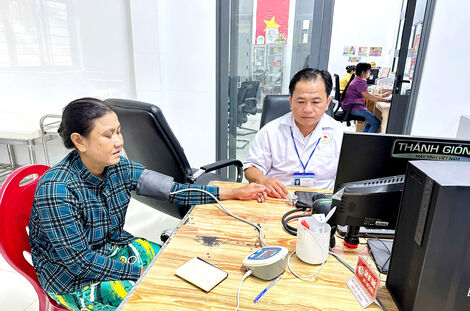 គ្រូពេទ្យនៅដំណាក់សុខាភិបាលឃុំង៉ុកតូ ទីក្រុងកឹងធើ កំពុងពិនិត្យជំងឺជូនប្រជាជន។