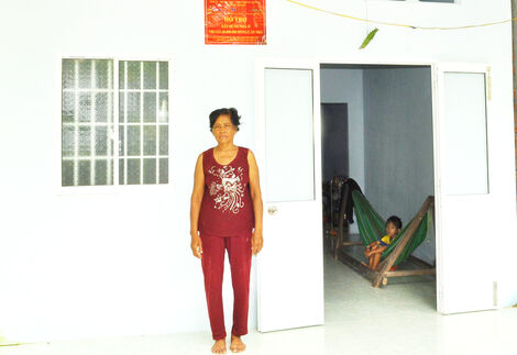 អ្នកមីងថាច់ធីធូ មានក្តីរីករាយពេលបានឧបត្ថម្ភសង់ផ្ទះថ្មី។