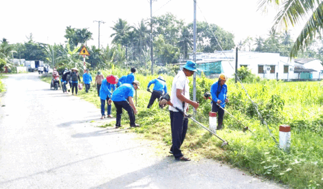 កម្មាភិ​បាល​ឃុំ​រួម​ជា​មួយ​នឹង​ប្រ​ជា​ជន​ជួយ​សម្អាត​ស្មៅ​តាម​សង​ខាង​ផ្លូវ​នៅ​ភូមិ​ចុង​ណូ ឃុំ​អាង​និញ។