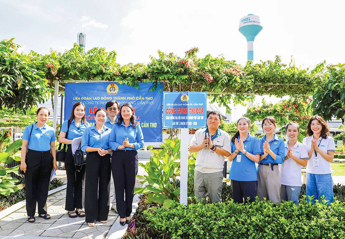 ថ្នាក់ដឹកនាំសហព័ន្ធសហជីពទីក្រុងកឹងធើ និងក្រុមហ៊ុនទទួលខុសត្រូវមានកម្រិត TKG TaeKwang កឹងធើ ធ្វើពិធីបំពាក់ស្លាកសញ្ញាសំណង់ប្រឡងប្រណាំង “សួនបៃតង” ដើម្បីអបអរសាទរមហាសន្និបាតសហជីពគ្រប់លំំដាប់ថ្នាក់។