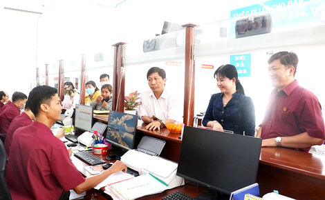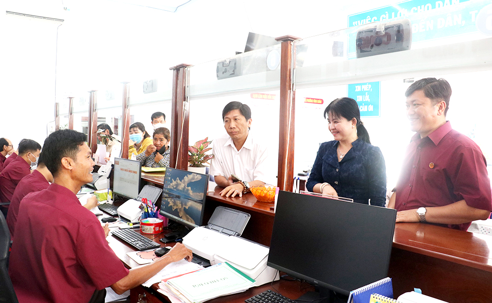 ការកំណែទម្រង់រដ្ឋបាល លើកកម្ពស់ប្រសិទ្ធភាពគ្រប់គ្រង បម្រើប្រជាជន គឺជាខ្លឹមសារមួយក្នុងចំណោមខ្លឹមសារនៃការប្រឡងប្រណាំង អាស្រ័យគណៈកម្មាធិការប្រជាជនទីក្រុងកឹងធើ បំផុសចលនា។ រូប៖ គណៈប្រតិភូត្រួតពិនិត្យកំណែទម្រង់រដ្ឋបាលទីក្រុងកឹងធើ ត្រួតពិនិត្យការងារទទួលនិងដោះស្រាយបែបបទរដ្ឋបាលនៅសង្កាត់វិញចូវ។