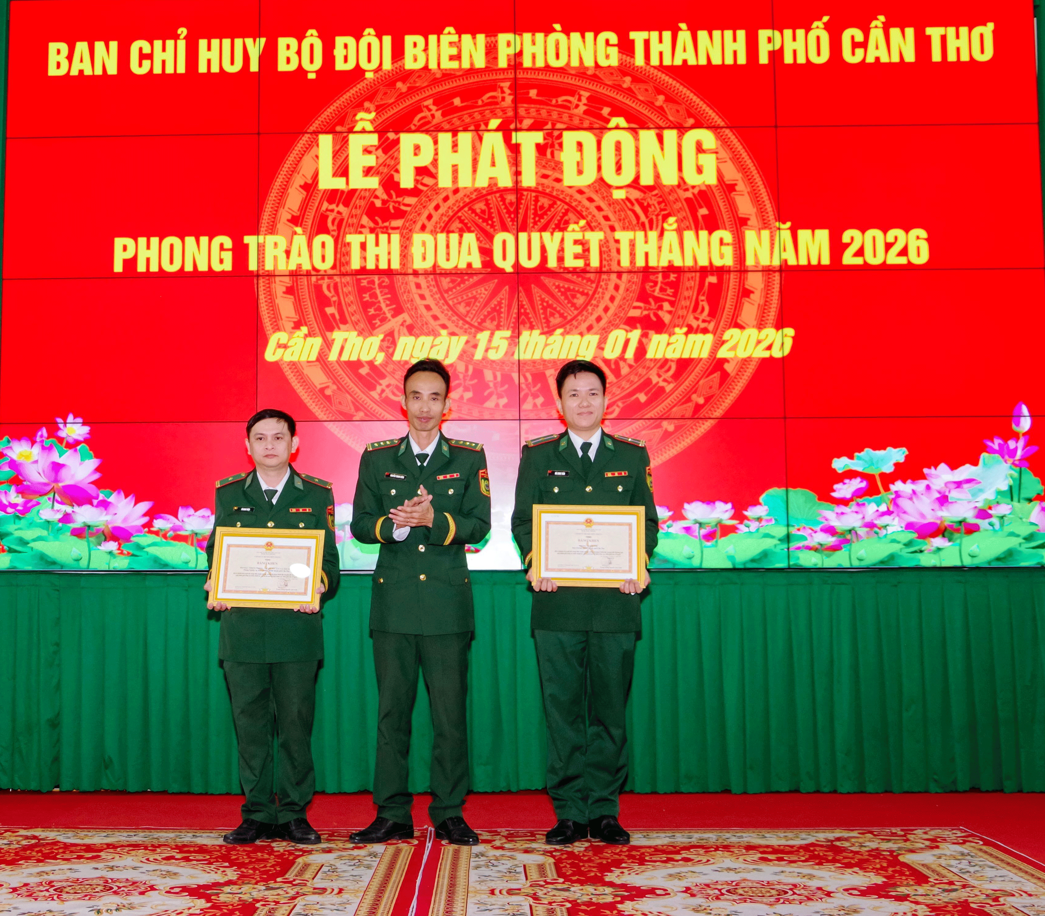 នាឱកាសនេះ គណៈបញ្ជាការកងទ័ពការពារព្រំដែនទីក្រុង បានជូនគឿ្រងឥស្សរិយយសការពារមាតុប្រទេសលេខបីដល់សមមិត្ត១រូប; ប័ណ្ណសរសើររបស់មេបញ្ជាការកងទ័ពការពារព្រំដែនជូនសមូហភាពចំនួន២ និងបុគ្គល៤រូប មានស្នាដៃឆ្នើមក្នុងការតស៊ូបង្ការប្រឆាំងបទល្មើសរត់គយ ក្លែងបន្លំពាណិជ្ជកម្ម៕