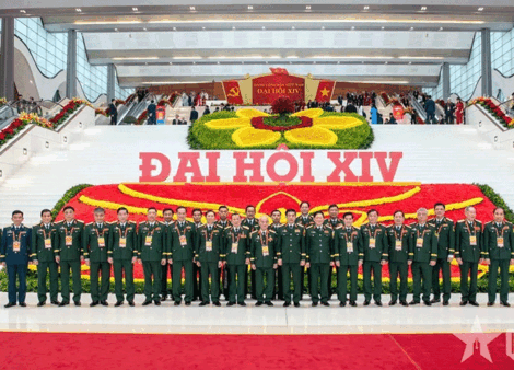 បណ្ដាសមមិត្តអតីតថ្នាក់ដឹកនាំក្រសួងការពារជាតិ រួមជាមួយគណៈប្រតិភូតំណាងបក្ខភាគគណះបញ្ជាការកងទ័ពក្នុងមហាសន្និបាត។ រូបថត៖ ទ្រុងហាយ