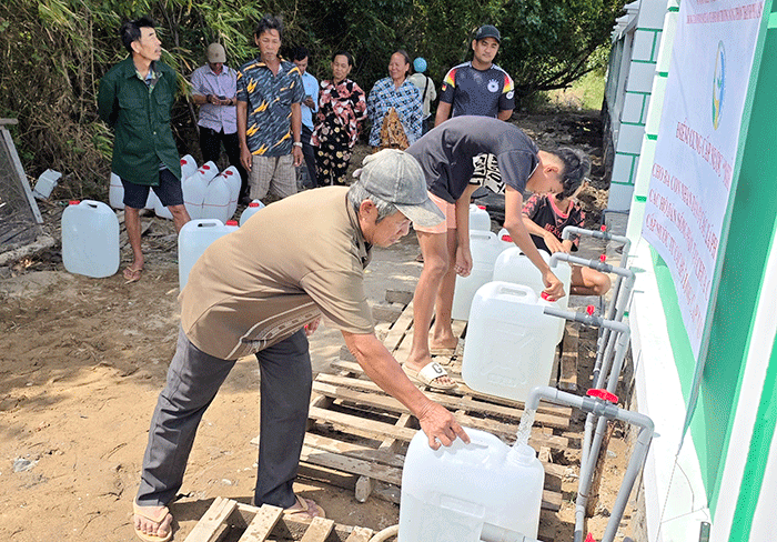 យោងតាមមជ្ឈមណ្ឌលទឹកស្អាត អនុវត្តតាមឯកសារនិងកិច្ចចង្អុលការរបស់ថ្នាក់ដឹកនាំមន្ទីរកសិកម្មនិងបរិស្ថាន និងគណៈកម្មាធិការប្រជាជនទីក្រុងកឹងធើ ស្តីពីការដាក់ពង្រាយទីតាំងផ្គត់ផ្គង់ទឹកស្អាតឥតគិតថ្លៃជូនប្រជាជននៅកន្លែងដែលមិនទាន់មានប្រព័ន្ធបំពង់ទុយោទឹកស្អាតអូសដល់ គិតមកដល់ពេលនេះ អង្គភាពក៏បើកទីតាំងផ្គត់ផ្គង់ទឹកស្អាតឥតគិតថ្លៃបានចំនួន១៨កន្លែង នៅតាមឃុំនិងសង្កាត់ជាច្រើនជាប់មាត់សមុទ្រ។ ជាក់ស្តែងដូចជា៖ ឃុំគូឡាវយុង, ឃុំអាងថាញ, ឃុំឡាយហ្វា, សង្កាត់ខាញ់ហ្វា, សង្កាត់វិញចូវ, សង្កាត់វិញភឿក...។