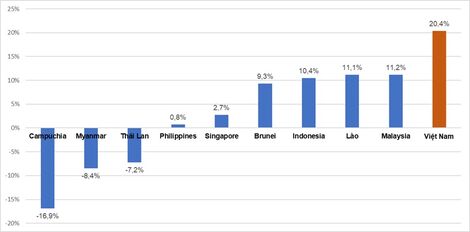 យោងតាមនោះ ក្នុងឆ្នាំ២០២៥ ចំនួនភ្ញៀវទេសចរអន្តរជាតិមកកាន់វៀតណាមសម្រេចកម្រិតកំណើន២០,៤% បើធៀបនឹងឆ្នាំ២០២៤ ខ្ពស់ជាងឆ្ងាយបើធៀបនឹងទីតាំងទេសចរណ៍ធំៗផ្សេងទៀតដូចជា ម៉ាឡេស៊ី (+១១,២%), ឥណ្ឌូនេស៊ី (+១០,៤%) ឬសិង្ហបុរី (+២,៧%) និងហ្វីលីពីន (+០,៨%)។ ក្នុងពេលនោះ មានទីតាំងទេសចរណ៍ជិតខាងមួយចំនួនបានកត់ត្រានូវការធ្លាក់ចុះនៃចំនួនភ្ញៀវទេសចរអន្តរជាតិដូចជា ថៃ (-៧,២%), កម្ពុជា (-១៦,៩%) និងមីយ៉ាន់ម៉ា (-៨%)។
