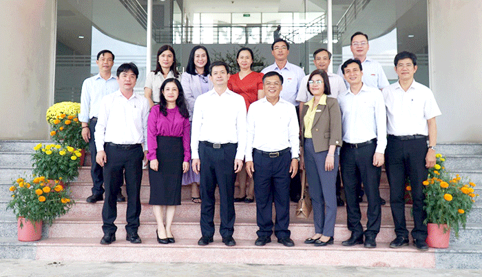 លេខាគណៈកម្មាធិការបក្សទីក្រុង លោកឡេក្វាងទុង ថតរូបអនុស្សាវរីយ៍ជាមួយថ្នាក់ដឹកនាំនិងកម្មាភិបាលកាសែតនិងវិទ្យុទូរទស្សន៍កឹងធើ។