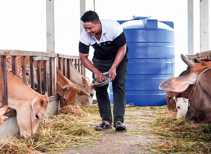 អតីតយុទ្ធជន​ថាច់ងុកហ៊ុង ​នៅឃុំថាញ់ធើយអាង​ កំពុងថែទាំហ្វូងគោ។