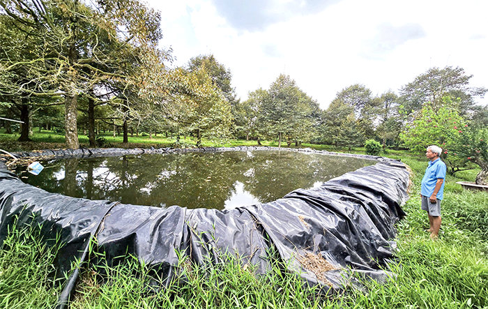 ប្រជាជននៅតំបន់វាលរាបទន្លេគឺវឡុង ស្តុកទឹកដោយប្រើប្លាស្ទិកសម្រាប់ស្រោចស្រពចម្ការទុរេន។