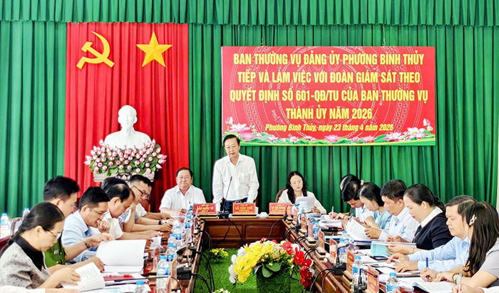 នៅ​ព្រឹក​ថ្ងៃ​ទី ២៣ ខែ​មេ​សា ក្រុម​ត្រួត​ពិ​និត្យ​លេខ ៦០១ របស់​គណៈ​អចិន្ត្រៃយ៍​នៃ​គណៈ​កម្មា​ធិ​ការ​បក្ស​ទី​ក្រុង​កឹង​ធើ ដឹក​នាំ​ដោយ​លោក ឡេ​តឹង​ធូ សមា​ជិក​គណៈ​អចិ​ន្ត្រៃយ៍​នៃ​គណៈ​កម្មា​ធិ​ការ​បក្ស​ទី​ក្រុង ប្រ​ធាន​គណៈ​កម្មា​ការ​កិច្ច​ការ​ផ្ទៃ​ក្នុង​នៃ​គណៈ​កម្មា​ធិ​ការ​បក្ស​ទី​ក្រុង​កឹង​ធើ បាន​ធ្វើ​ការ​នៅ​សង្កាត់​ប៊ិញ​ធ្វី អំ​ពី​ស្ថាន​ភាព​អនុ​វត្ត​ភារ​កិច្ច​សំ​ខាន់ៗ​ក្នុង​ឆ្នាំ ២០២៦។
