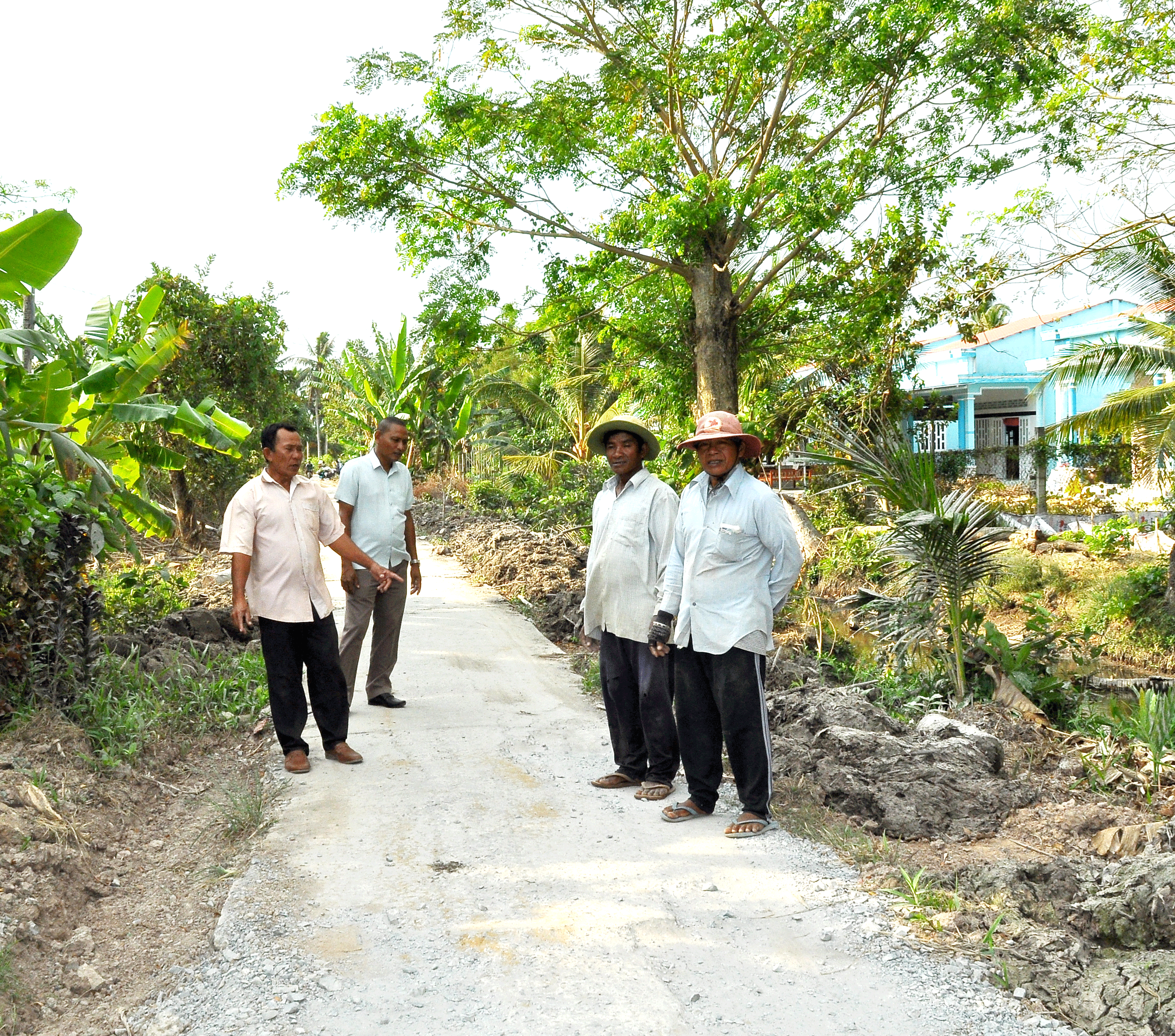 ផ្លូវ​ដាន​នៅ​មុខ​ផ្ទះ​គាត់ ពី​មុន​បាន​រដ្ឋ​វិនិ​យោគ​កសាង​តាម​កម្ម​វិធី ១៣៥ ប៉ុន្តែ​ផ្លូវ​នៅ​តូច​ចង្អៀត និង​មាន​ភាព​ទ្រុឌ​ទ្រោម។ ក្នុង​នាម​ជា​លេខា​សា​ខា​បក្ស គាត់​បាន​ចាត់​តាំង​កិច្ច​ប្រ​ជុំ​ប្រ​ជា​ជន ចល​នា​មា​មីង​បរិច្ចាគ​ដី​ពង្រីក​ផ្លូវ​ រដ្ឋ​វិនិ​យោគ កសាង​ផ្លូវ​ថ្មី​សម្រេច​បទ​ដ្ឋាន។ មុន​នឹង​ចល​នា​មា​មីង គាត់​ស្ម័គ្រ​ចិត្ត​បរិច្ចាគ​ដី​ប្រ​វែង​ជិត ៥០ ម៉ែត្រ ទទឹង​ជាង​៣​ម៉ែត្រ គាត់​រៀប​ចំ​កាប់​ឆ្ការ ដើម​ឈើ​និង​ពង្រាប​ផ្ទៃ​ដី​ដោយ​ខ្លួន​ឯង រួច​ប្រ​គល់​ឱ្យ​អង្គ​ភាព​កសាង​ផ្លូវ។ ពេល​ឃើញ​កម្មា​ភិ​បាល មូល​ដ្ឋាន​បរិច្ចាគ​ដី​ពង្រីក​ផ្លូវ ប្រ​ជា​ជន​ដែល​រស់​នៅ​តាម​បណ្តោយ​ផ្លូវ​ដាន​នេះ ក៏​ស្ម័គ្រ​ចិត្ត​បរិច្ចាគ​ដី​រៀងៗ​ខ្លួន​ដើម្បី​ធ្វើ​ផ្លូវ។