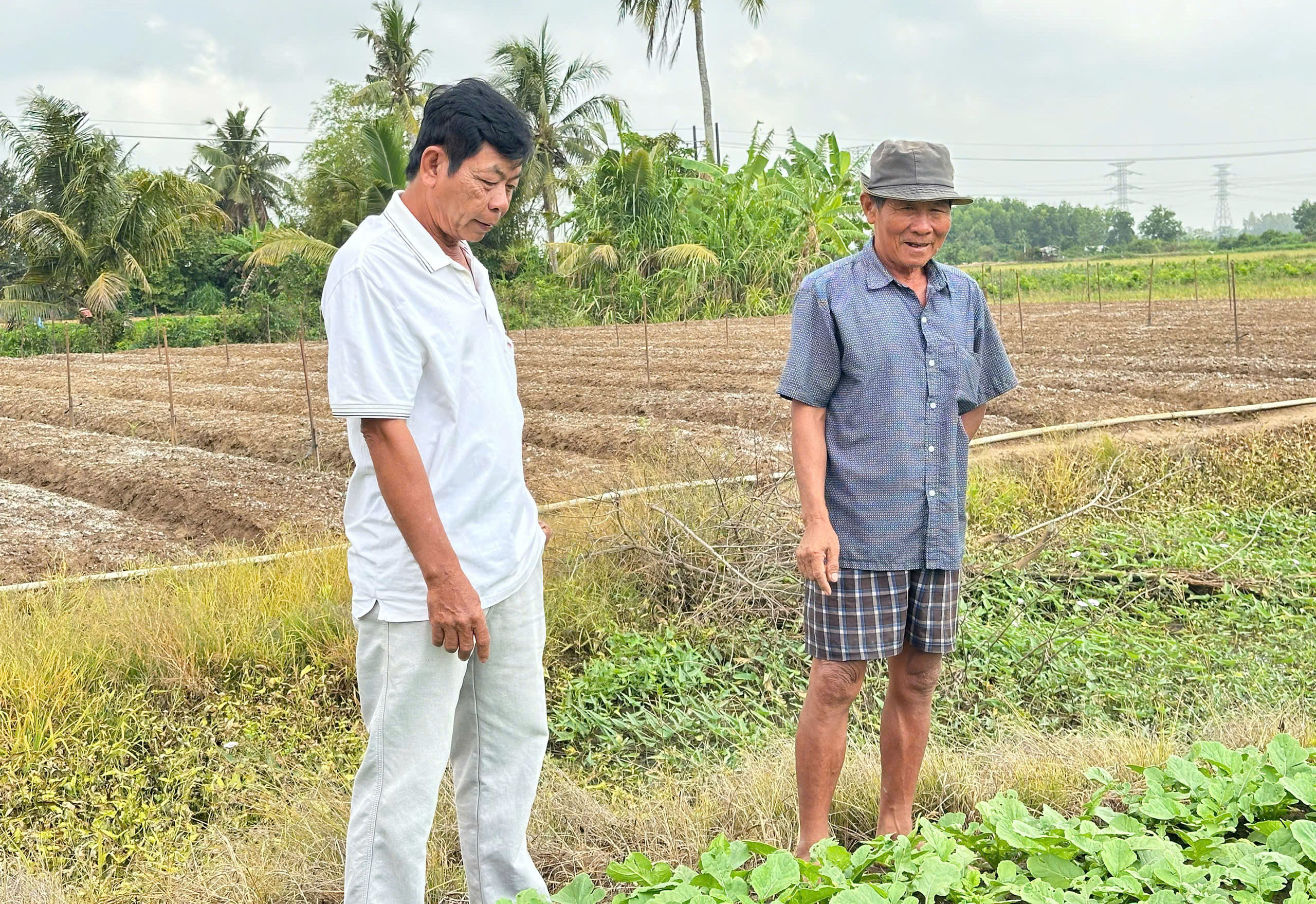 លោក​យ័ញ​វ៉ាំង​ហ្វៀង (ខាង​ឆ្វេង) ពិ​និត្យ​ទម្រង់​ដាំ​ដុះ​របស់​មា​មីង។
