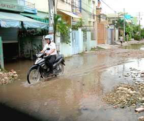 Mới đây, tôi đến khu vực 1, phường An Hòa sau cơn mưa chiều vừa dứt, một số tuyến đường giao thông trong khu vực ngập sâu trong nước sình đặc quánh. Ghé vào nhà bà N.T.T, một cán bộ nghỉ hưu, ở hẻm 188, gặp lúc ông bà đang gói ghém đồ đạc, chuyển đi ở nhà trọ để nâng cao nền nhà chống ngập nghẹt. Bà T. bức xúc nói: “Mỗi lần trời mưa nước sình cứ chảy vào nhà làm hư hỏng hết đồ đạc rồi. Bây giờ vợ chồng tôi phải thuê nhà trọ ở để nâng nền nhà lên, ở thế này chịu hết nổi rồi chú ơi!”. Đi dọc tuyến hẻm 188, sau cơn mưa vừa tạnh, tôi chứng kiến nhiều gia đình cũng đang đắp bờ tát nước dơ từ trong nhà ra ngoài. Bà Nguyễn Thị Thảo, một người dân ở khu vực 1, tỏ ra ngao ngán nói: “Mấy năm trước mỗi lần trời mưa nước cũng tràn vào nhà, nhưng ngớt mưa là nước rút ngay. Năm nay, trời tạnh mưa mà nước vẫn không rút, nên phải tát nước ra”. Do nước rút chậm, khi trời mưa lớn, rất nhiều gia đình ở khu vực bị nước tràn vào hầm cầu, rồi chảy lênh láng ra nhà gây hôi thối, ô nhiễm nghiêm trọng nên không thể sinh hoạt, ăn uống, nghỉ ngơi được.