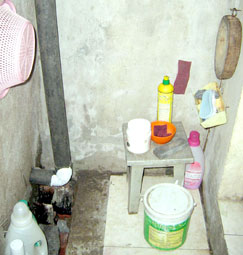 Phần đường nước chung (x) chảy qua nền nhà của bà Oanh, hiện đã bị xây bít.
