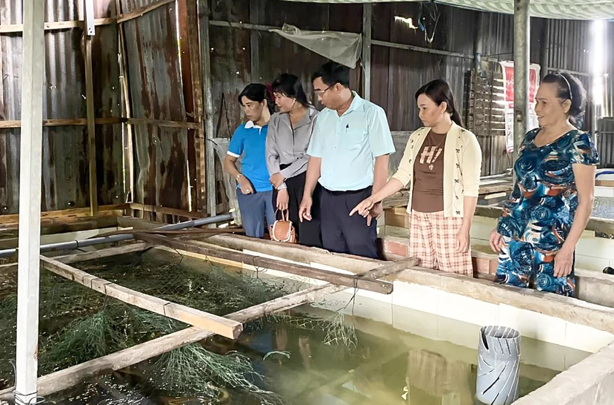 Chị Mã Thị Tuyết (thứ hai từ phải qua), ấp Trường Hòa, xã Thới Lai, TP Cần Thơ, khởi nghiệp với mô hình nuôi lươn không bùn.
